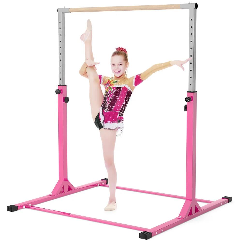 Gymnastics Bar, which is suitable for beginners or 1-4 level home balance training. The direct pull-down weight limit 330lbs with its triangle designed base, which ensures the stability of the whole structure. Specially designed screw knobs make it easy to adjusts height from 2" interval with Unique 11 Levels, while the lock down knob is equipped for double safety.Gymnastic training bar features high-quality solid wood material coating for superior anti-corrosion performance and long-lasting durability. Our professional grade gymnastics equipment is super easy to assemble and operate,you can set it up in minutes regardless if you want to use it at home or in the gymnastics arena.
