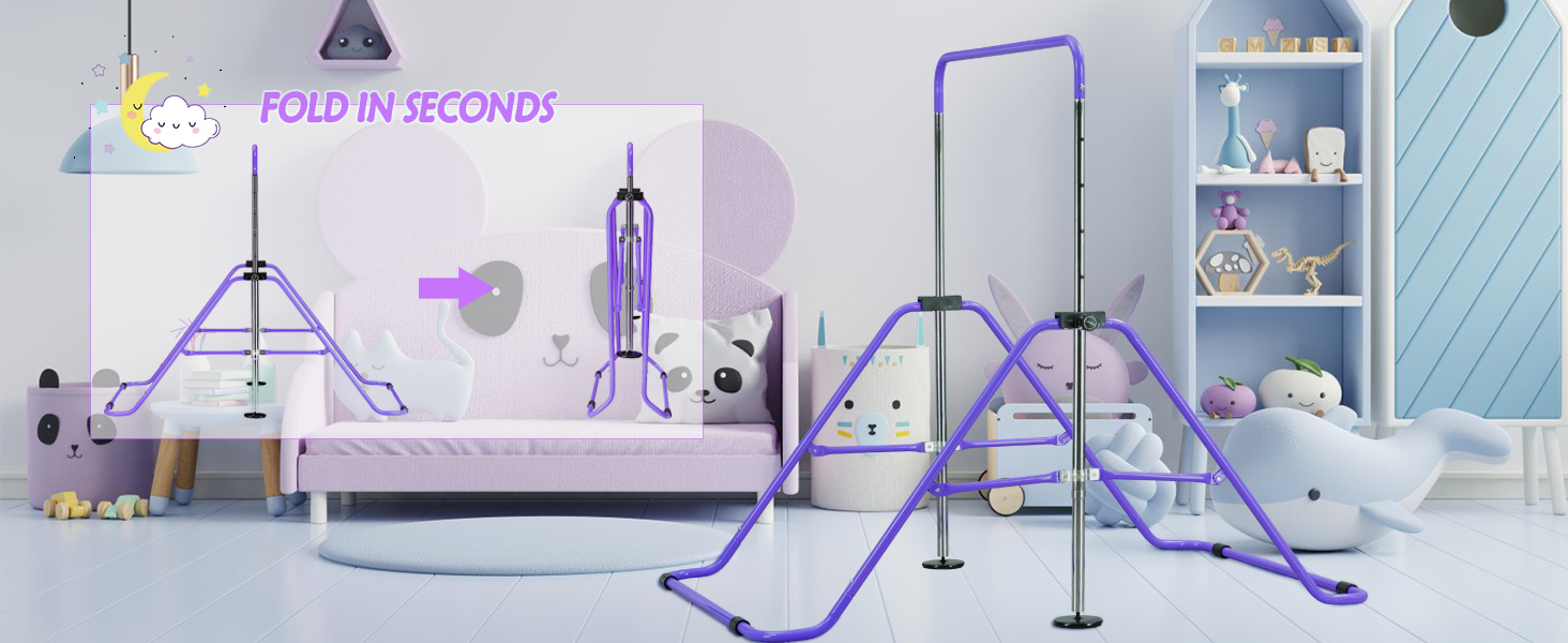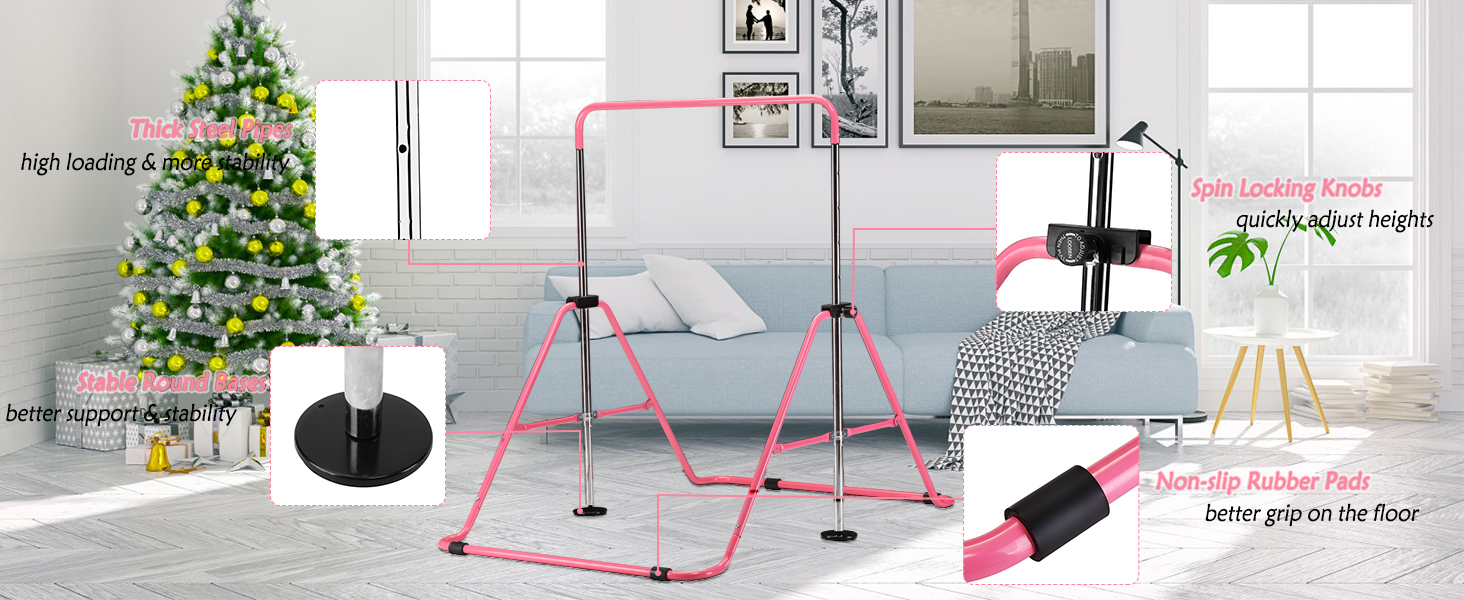 · 2.EXPANDABLE & FOLDING: The gymnastics bar can be easily adjusted up or down in height, can be folded to save space, the gymnastic training bar have 4 height to adjust; Ideal for gymnasts from levels 1-4. It's a perfect gift for Birthday, Halloween, Thanksgiving Day, Christmas and so on.